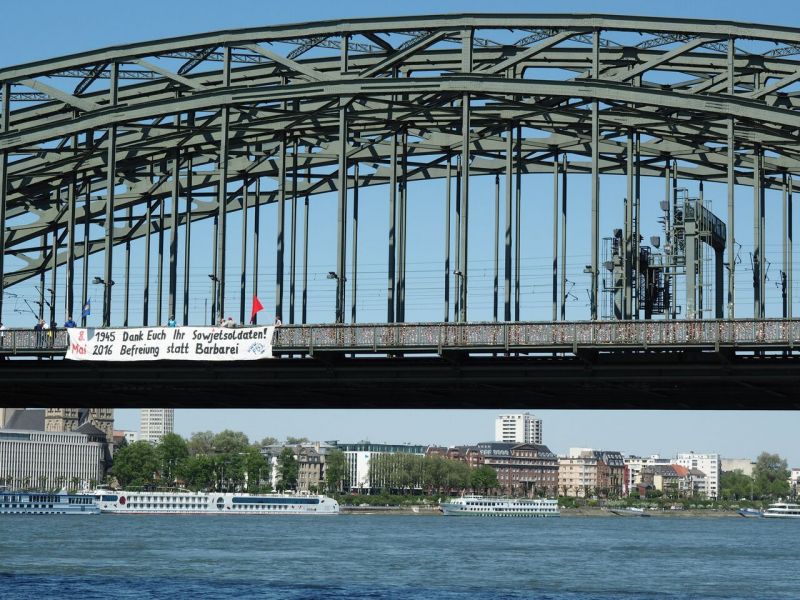 Die FDJ Gruppe Rhein/Ruhr hisste daher am heutigen Tag auf der Hohenzollernbrücke in Köln ein Transparent, auf dem es hieß: